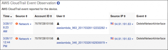 But with AWS VPC Flow Logs, an import form of native telemetry available in AWS, and Stealthwatch Cloud, you can automatically correlate these IP addresses and track Lambda functions over time. ENIs can be enumerated with the EC2 API and matched to the requesting Lambda function, and once the ENIs and IP addresses are known, a Lambda function’s activity can tracked using VPC Flow Logs. Stealthwatch Cloud uses these resources to monitor Lambda functions for abuse.