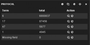 For our exercise we wanted to use Kibana to view top destinations and ports with most traffic, the protocols that use the most traffic and a traffic graph. Of course, there are many more graphs that could be produced in Kibana.