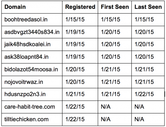 There was a spike of traffic utilizing the 0-day beginning on January 20th, all of which were blocked by Cloud Web Security (CWS). Although this spike showed an increase in Angler related attacks, these attacks represent a small minority of the overall attack traffic. Based on our telemetry data we have seen domains associated with a single registrar being primarily responsible for the exploits being delivered. The approach appears to be rapid domain registration and exploitation with quick rotation of domains. Despite the rapid use of domains the IP’s associated with the attacks have been limited to two primary addresses (46.105.251.7 & 94.23.247.180). Below is a table illustrating domain names recently used by the group as well as several recently registered domains, that have yet to be seen. Most domains are registered one day, and then used for a short period of time beginning the following day. The majority of the domains are used for only 24 hours. Talos continues to see new domain registrations daily. A list of these domains compiled by Talos can be found here.