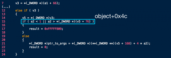 This series of calls would normally lead to the replacement of the object reference lie in the function QuickTime!0x748a40. However, because the error code returned down the stack isn’t zero, the branch below is taken and the code path skipped.