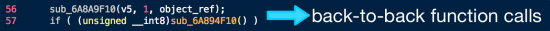The first function swaps out the reference in object_ref for a bigger object, one of size 0xb0 bytes, and the second function operates on this new object.