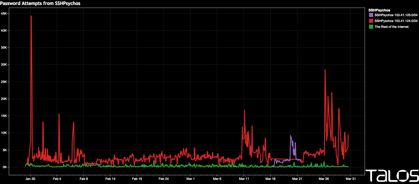 Talos has been monitoring a persistent threat for quite some time, a group we refer to as SSHPsychos or Group 93. This group is well known for creating significant amounts of scanning traffic across the Internet. Although our research efforts help inform and protect Cisco customers globally, sometimes it is our relationships that can multiply this impact. Today Cisco and Level 3 Communications took action to help ensure a significantly larger portion of the Internet is also protected.