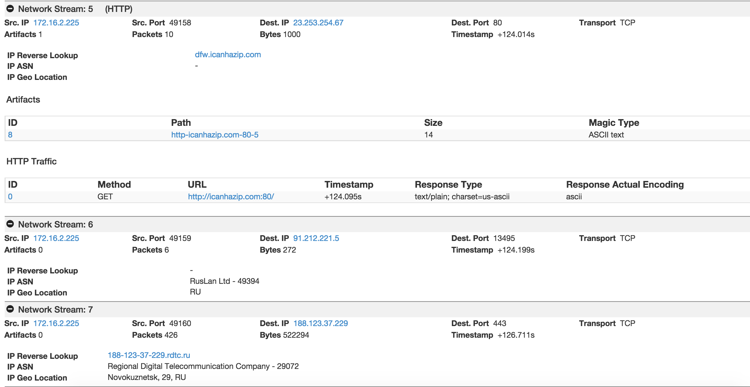 Now after the initial IP check and a brief communication to a IP address on a high port, all further communication is encrypted. The non-encrypted portion only accounts for less than 1% of the data transferred between the compromised host and C2 servers.