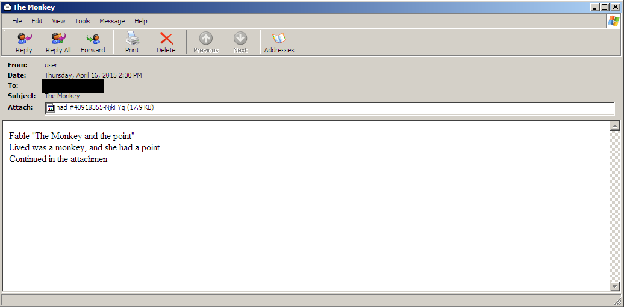 Figure 2: Document displayed to Users after executing attachment