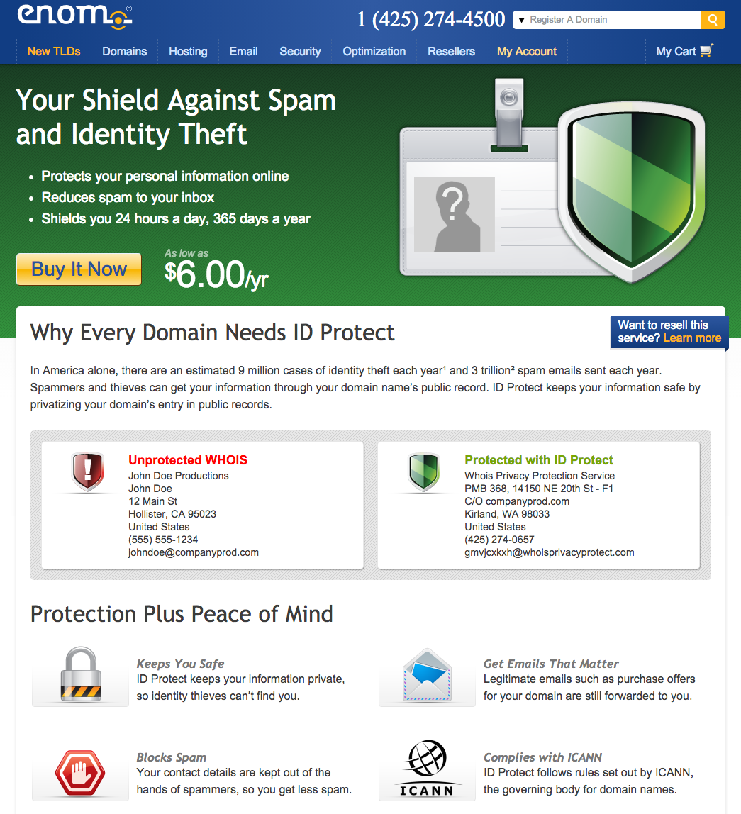 This information leakage exposed the affected users to a number of possible threats, some of which are described in eNom’s advertisement for the privacy protection service, which states “In America alone, there are an estimated 9 million cases of identity theft each year and 3 trillion spam emails sent each year. Spammers and thieves can get your information through your domain name’s public record. ID Protect keeps your information safe by privatizing your domain’s entry in public records.”
