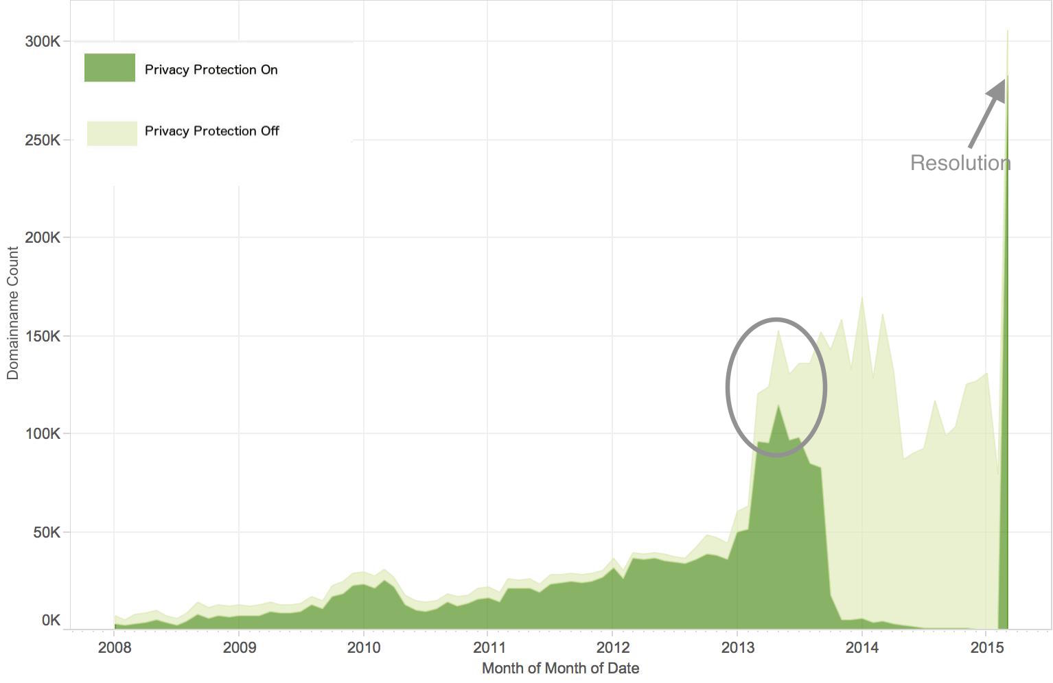 WHOIS privacy protection service is a commonly used feature for asserting privacy when it comes to Internet domain name registration. Without it, registration information associated with the domain registration, such as name, physical address, email, and phone number becomes exposed to everyone on the Internet. It’s possible to mine this information and leverage it for malicious purposes, such as spamming, spear phishing or other potential forms of harassment. Judging by our numbers for most domain owners, keeping this information private is important. Typically, WHOIS privacy protection is a feature that customers must request and possibly even pay for, in addition to the cost of the domain registration.