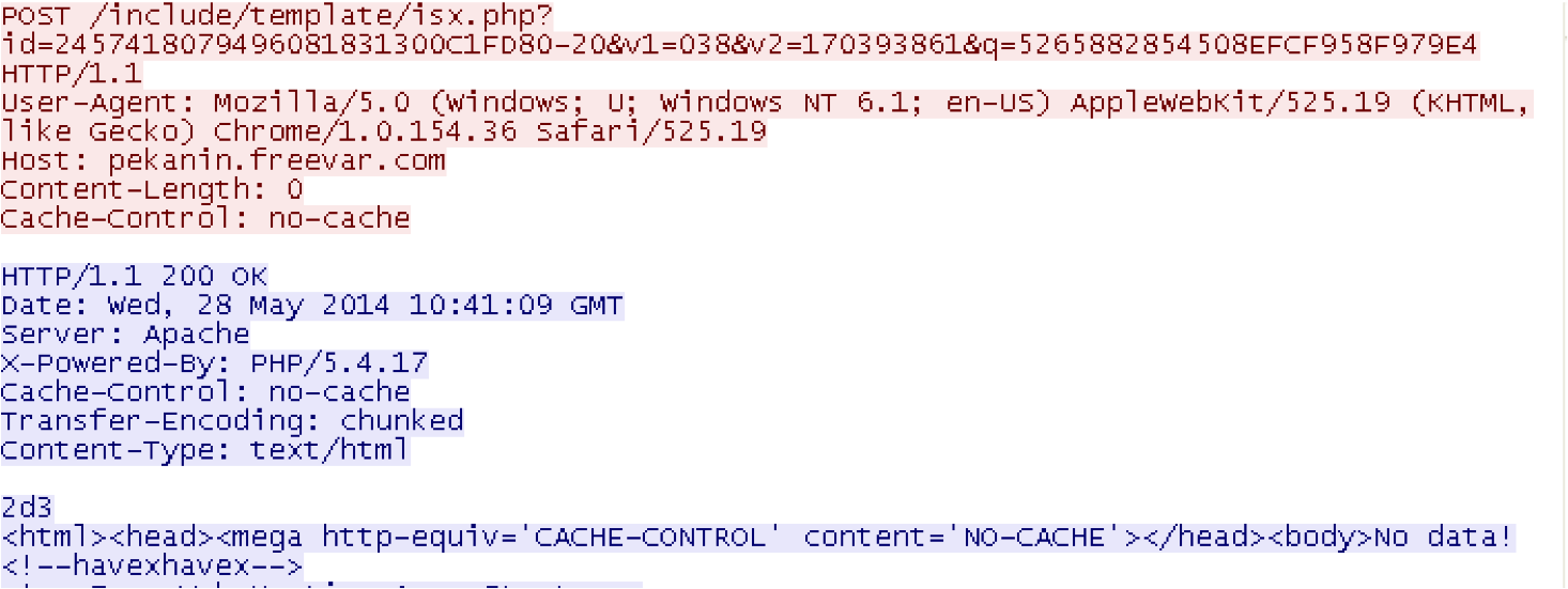 And another request to the command and control server to deliver another type of malware family entirely! This malware is currently identified as Havex RAT :