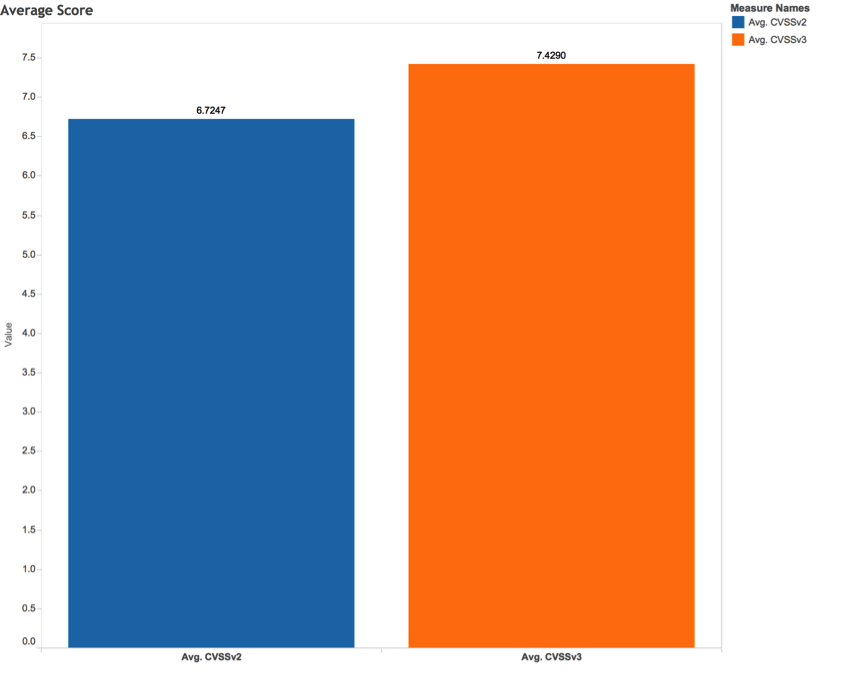 The CVSSv2 and CVSSv3 scores were analyzed for 745 vulnerabilities. These vulnerabilities were disclosed from January 2016 through April 2016. The scores used were provided by the National Institute of Standards and Technology (NIST) in NVD. The average CVSSv2 and CVSSv3 base scores of all vulnerabilities were calculated and compared, as shown below: