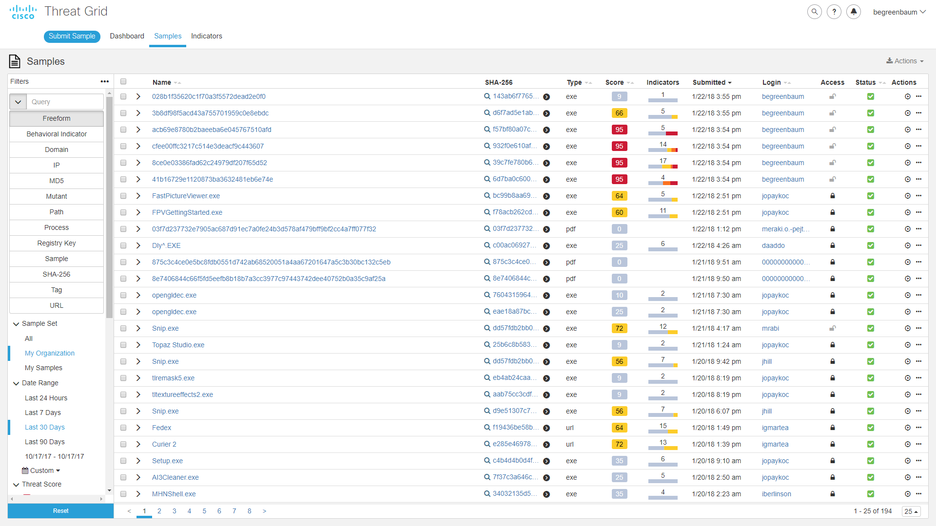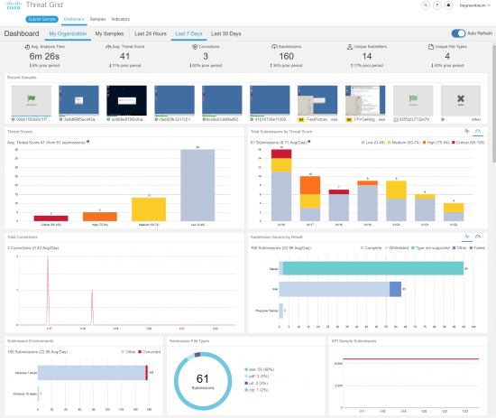 With these changes, we hope that you find Threat Grid to be a more intuitive, faster and easier to use tool. You can quickly sift through large amounts of information for specific details, or easily view the set as a whole with insight into trends and breakouts. You and your staff can spend more time working, and less time getting to where the work is done.
