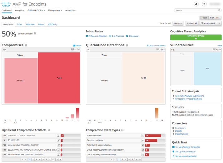 Since malware began, there has been a need to inspect files to ensure that they have not been compromised or the source of corruption themselves.  A downloaded file that was benign yesterday could morph into something detrimental tomorrow. Exploits that are frequently paired with malicious files represent another problem of memory-resident malware, that doesn’t have any footprint on the disk and that attempts to inject into legitimate processes to stay undetected.  Advanced Malware Protection (AMP) does retrospective analysis such that it doesn’t just inspect a file once and moves on.  It has the ability to look back in time and see exactly when and how a file changed, what it did, who it effected.  Additionally, a file discovered to be malicious on one machine can be quarantined and an update can be sent to all machines that prevents them from ever even opening that file, now limiting the exposure to the rest of the network. AMP for Endpoints goes even deeper and prevents malicious access to memory resources of most common applications and Operating System processes. AMP for Endpoints serves as the last line of defense for your endpoints, servers, and mobile devices, utilizing a protection lattice that combines multiple sophisticated techniques to counteract malicious actors. Learn more here.