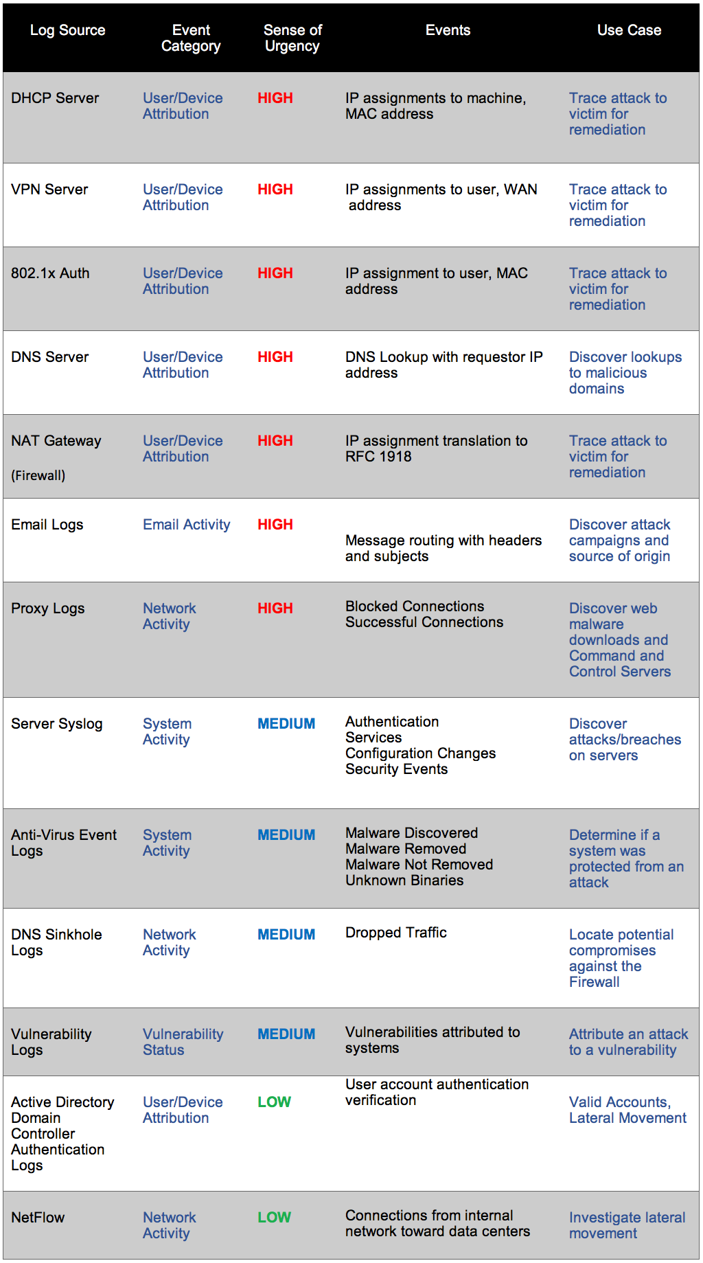 This is not the approach that should be taken and is why we here at Cisco, assist organizations in building effective, world-class Security Operations Centers (SOCs) that will help prioritize log sources based on the Use Case, Event, and Sense of Urgency desired to detect and prevent an attack as it happens, and impulse to more of an Intelligence-driven Incident Response competency, shown in the figure below. For instance, logs should not be ingested without first building a use case scenario for the business to determine if the use case can be successfully achieved. This is similar to building a business case for a particular investment in technology and answers the question of ‘What’s your end-goal’? All use cases have one end-goal which is attribution to the detection of a threat, a fundamental necessity to the response of an incident. However, a use case can’t be built without the technology logging the appropriate necessities, and vice-versa, attribution can’t be achieved without a successful use case.