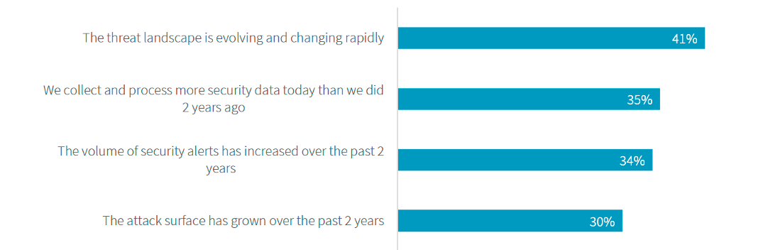 According to research from Enterprise Strategy Group (ESG) and the Information Systems Security Association, 91% of cybersecurity professionals believe that most organizations are either extremely or somewhat vulnerable to a significant cyber-attack or data breach.1 CISOs have tried many different solutions. Many are increasing hiring in a field with a steep talent shortage, which may have some long-term returns but doesn’t solve the problems they are facing today. Some also purchase a patchwork of security solutions that aren’t really integrated – an approach that can cause major complications for security architects. These strategies are clearly not increasing confidence in their overall security effectiveness.