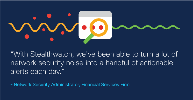 CISOs of the world can’t keep up with their security workloads, especially with a global cybersecurity talent shortage. They need quick wins– fast, efficient and accurate alerts that allow them to focus on what really matters. Cisco Stealthwatch is the tool they need right now.