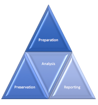 Digital forensics is required during Incident Response and will continue as new compromised systems are identified. Digital forensics also supports root cause analysis, which is required for your organization to recover from an incident. The National Institute of Standards and Technology (NIST) maintains a series of documents called the 800-Series Special Publications (SP). One document titled “NIST Special Publication 800-86: Guide to Integrating Forensic Techniques into Incident Response”, which describes the forensic process as follows: