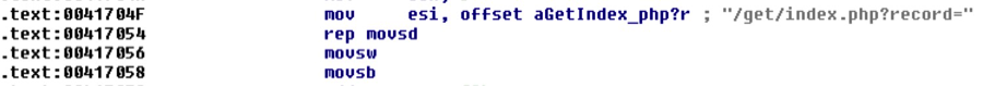 This string is then Base64 encoded and appended to the URI before the HTTP GET request is sent. This is the only malicious network traffic witnessed from this binary.