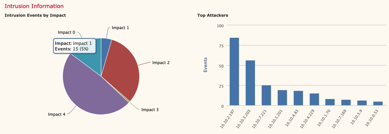 During the conference, several intrusion events were recorded by FTD. Automated event analysis correlated threat events with contextual endpoint data, to identify IPS events that require immediate investigation. Whenever a working exploit targeted a vulnerable host on the guest network, an Impact 1 event was raised. For the SOC, that helped cut through the noise and focus attention to save previous time.