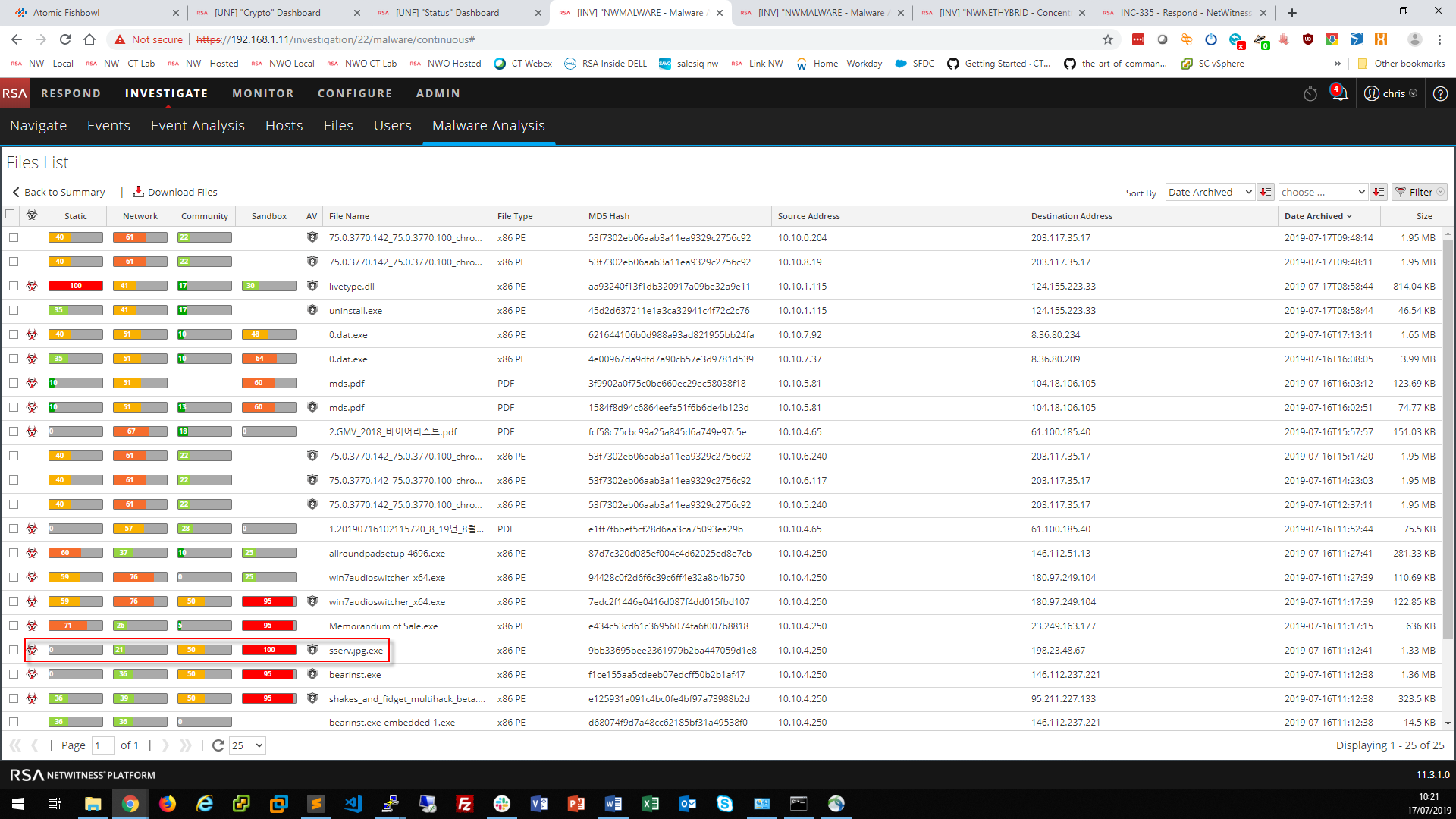 For suspicious files that might be malicious, NetWitness Packets checks a community AV lookup, some static analysis and its own network intelligence. Then NetWitness Malware Analysis sends the files to Cisco Threat Grid for dynamic malware analysis.