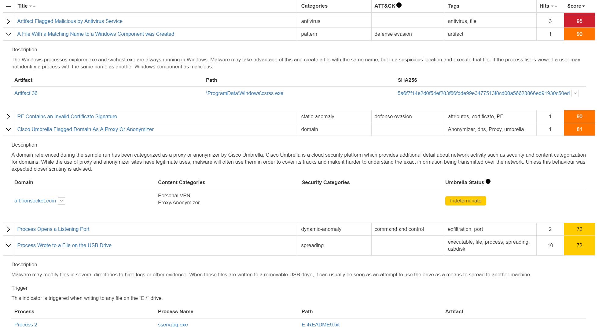 We also noted the sample attempted to hide itself as a Windows system file, opened up a Personal VPN – Proxy/Anonymizer and wrote files to a USB drive.