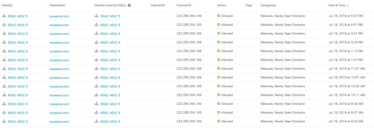 Overall, we saw over 5m DNS requests during RSAC APJ. A couple of thousand would have been blocked in a production environment.
