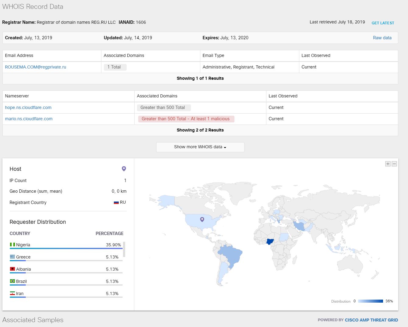 We could see the domain was registered in Russia and the distribution of the requesters.