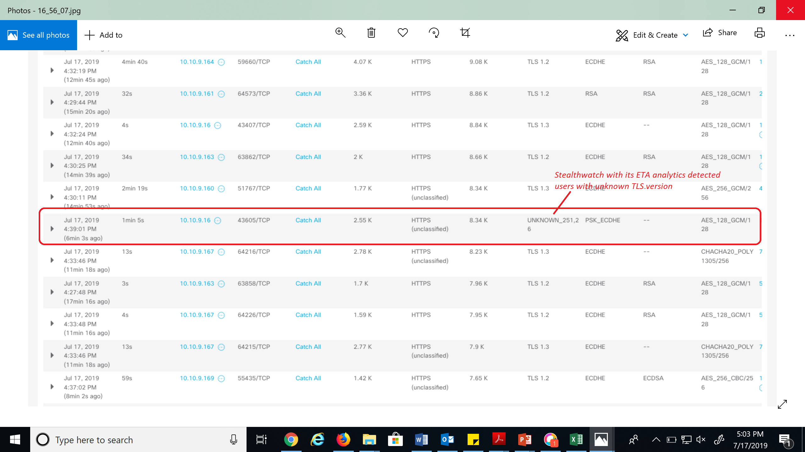 The solution with its unique ability to look at encrypted traffic without decryption, also detected users with unknown TLS version.