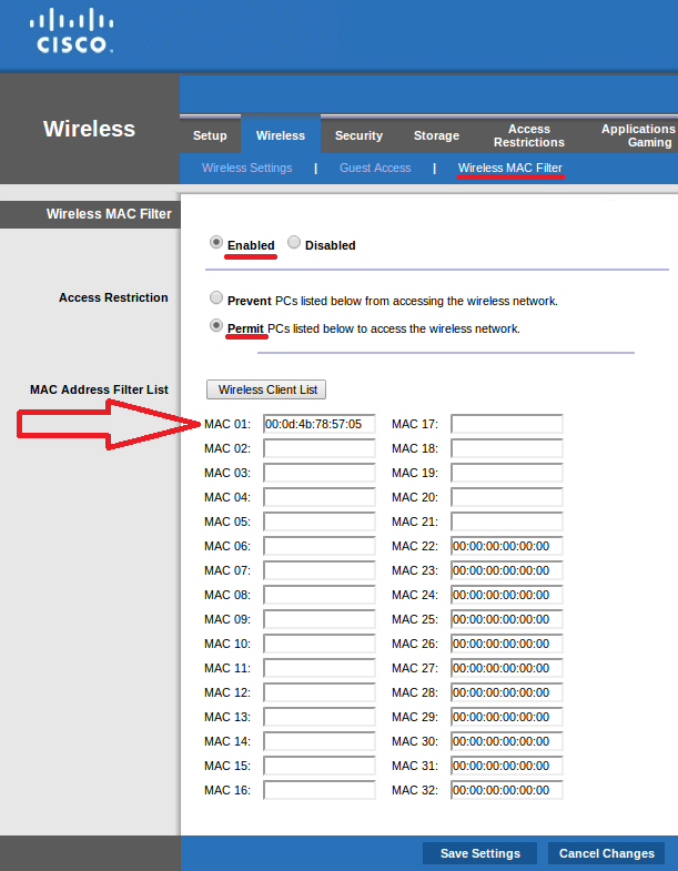 3. Enable MAC address white listing.