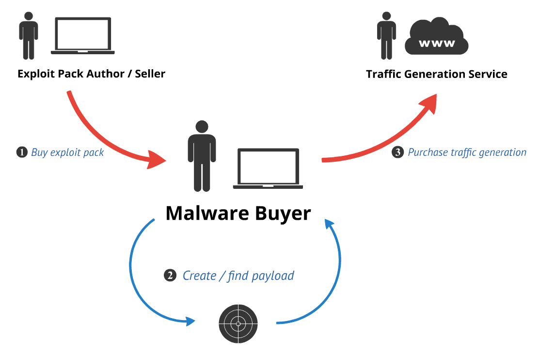As illustrated in the image below, once a threat actor purchases access to an exploit pack, the subsequent steps in a successful drive-by attack include providing a malicious payload to insert into the EP configuration, and finally redirecting unsuspecting web browsers to the EP landing page. There are a number of ways to redirect users, and in this campaign a CDN was used in conjunction with legitimate website compromises.