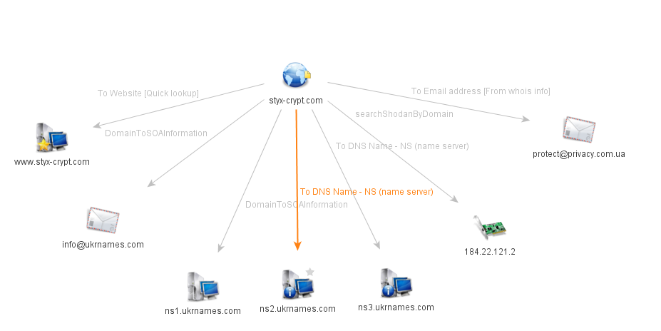 The styx-crypt.com domain still resolves to an IP address though the website is currently offline. The domain registrant’s email address uses a Ukrainian privacy protect service and the name servers are also located in the Ukraine.