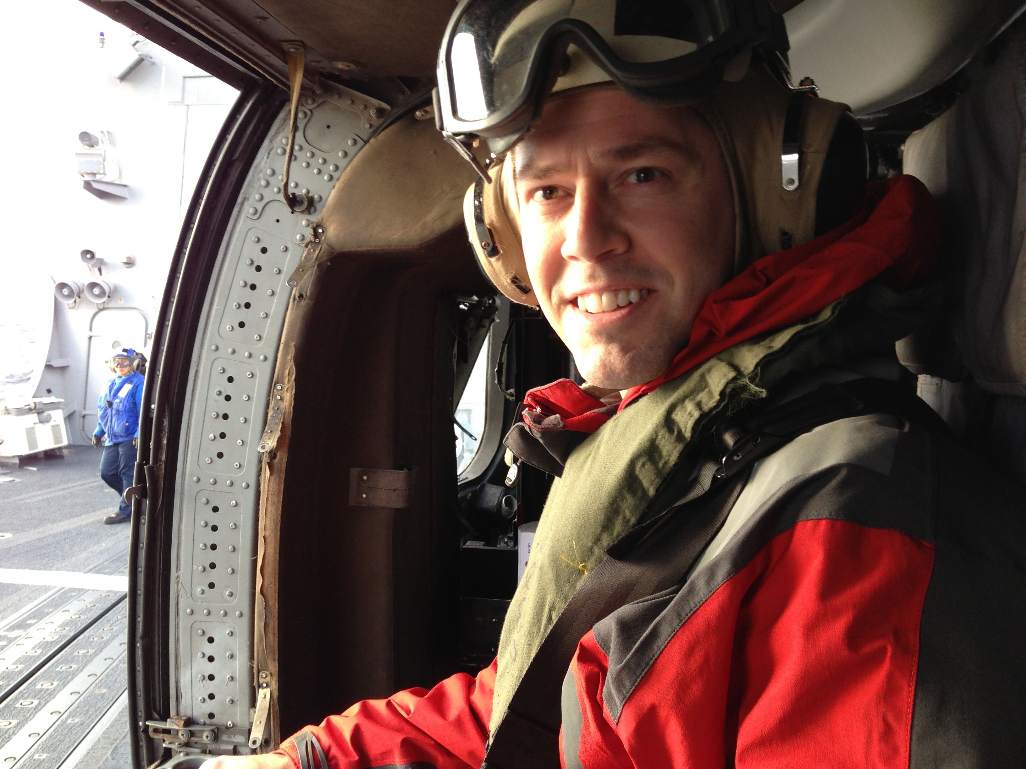 After our turn in the combat systems room, we were told the weather was going to get worse and they wanted to send a helo to pick us up about an hour early to ensure we weren’t all stuck on board for the night (though all of us would have gladly stayed aboard if given the chance). We gathered our things, finished our briefing with the captain and headed to the helo hangar to await our ride home. The helo arrived but had to circle for about twenty minutes waiting for a “green deck”, which was the clearance from the ship’s air controller to land. While the ship has the capability to land a helo in literally any sea-state and weather condition, as stated before, when civilians are aboard, they get very conservative and don’t take unnecessary risks. We were literally about 4 minutes from being called off and staying aboard for the night when the helo finally got clearance to land. I watched it come in through a portal window in the exterior door and it was an awesome sight getting to see it land on a moving deck in the slightly rough seas. We were then given our flight gear by the helo crew and instructed to follow them out and get aboard. I was asked to sit in the port side gunner’s window seat on the way back, which was fantastic. To get to fly off a ship and over the Pacific Ocean with a giant open window in front of me was a great way to end the exciting day. The flight back to N.A.S. North Island took about 40 minutes and after landing, we got a final debriefing and headed off on our way.