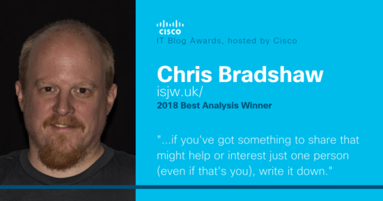 We’ve given you insights into what makes a great blog with a short interview of Daniel Dib and Giuliano Barros. Now, it’s our pleasure to introduce Chris Bradshaw, blogging veteran and Best Analysis winner of the 2018 IT Blog Awards. Read on to gain insights into how he started, his advice to anyone thinking about starting their own blog and how he analyzes technology.
