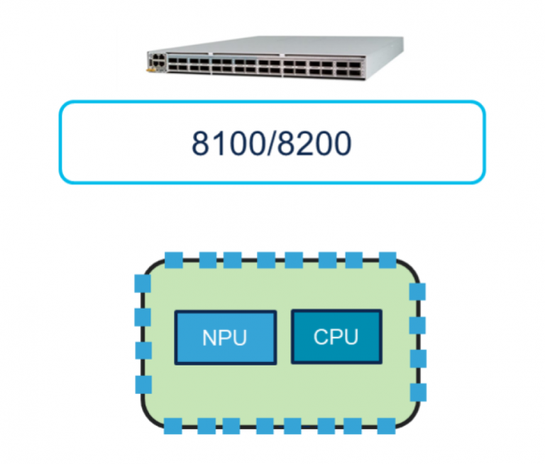 - Switch card: SCs sit orthogonally in the back of the MPAs with connections to all MPAs. SCs directly host the NPUs, with up to two SCs in the system that work in active-standby mode to deliver data plane redundancy.