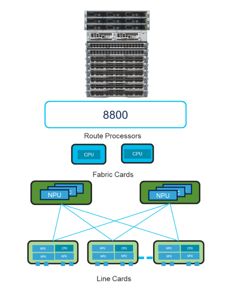 These requirements have far exceeded what could be accomplished with a single NPU on a fixed system, which is why every line card has multiple NPUs participating in the forwarding decisions. This architecture helps deliver favorable customer outcomes with increased reliability and flexibility.
