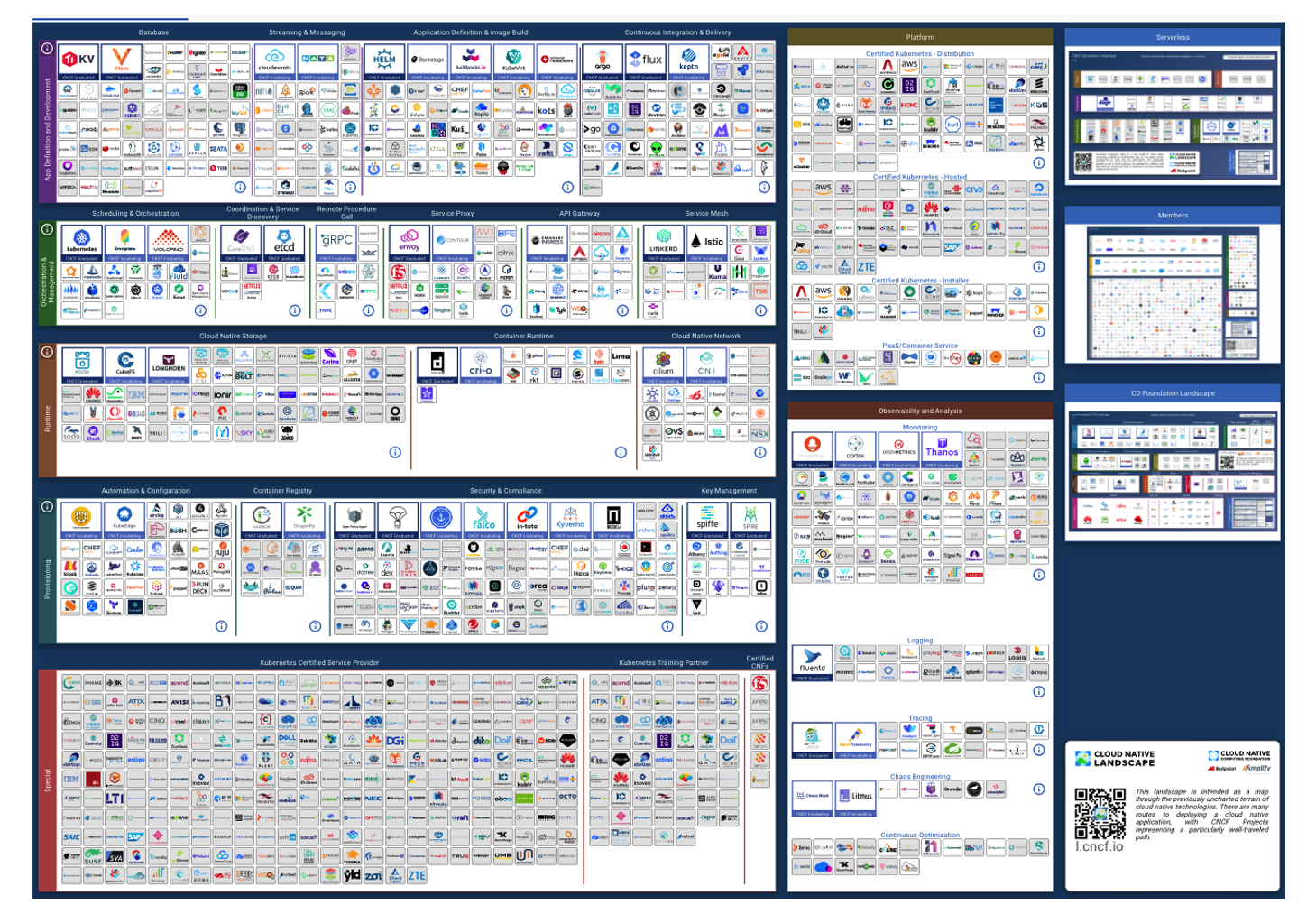 The Cloud Native Computing Foundation (CNCF) landscape provides an abundance of solutions for building a platform stack, even providing a helpful map (https://landscape.cncf.io/) that engineers can use to visualize options in building a cloud-native stack.