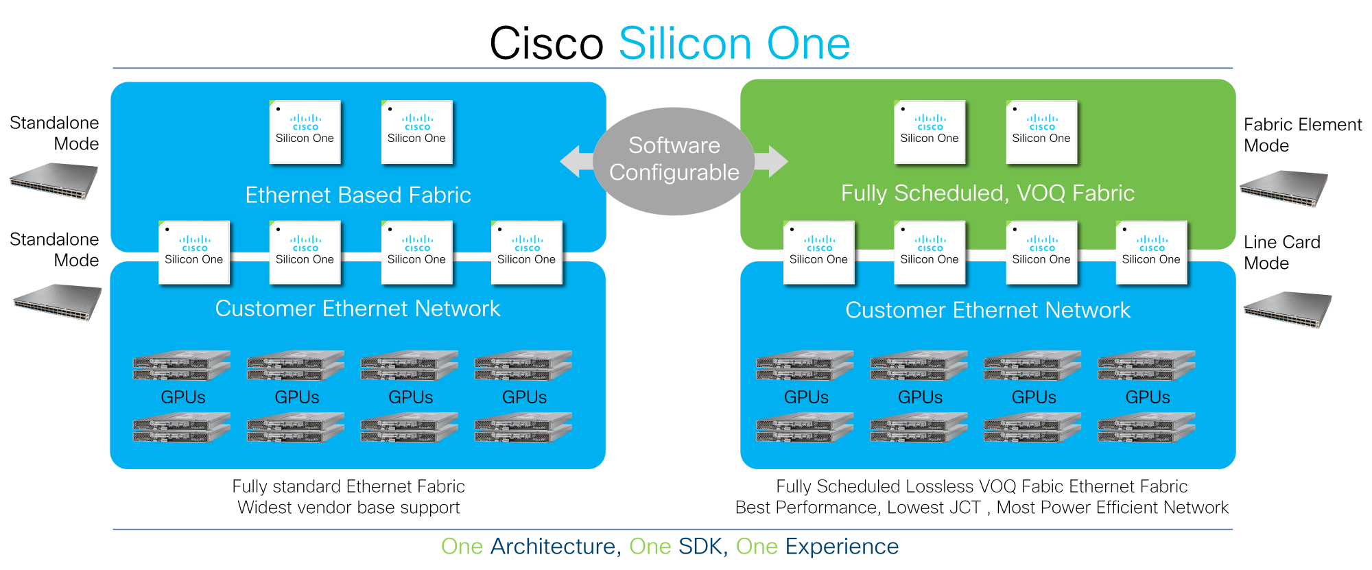 Cisco Silicon One is uniquely positioned to provide a solution for either of these customers with a converged architecture and industry-leading performance.