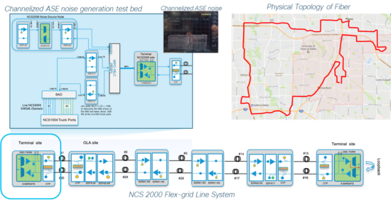 We partnered with Verizon to demonstrate the benefits of the granular control of the NCS 1004 in a real-world environment. Ten fibers in Verizon’s 80km Dallas loop were used with NCS 2000 SMR flex-grid ROADMs to build an 800km network. Channelized ASE noise loading was provided by NCS 2000 equipment.