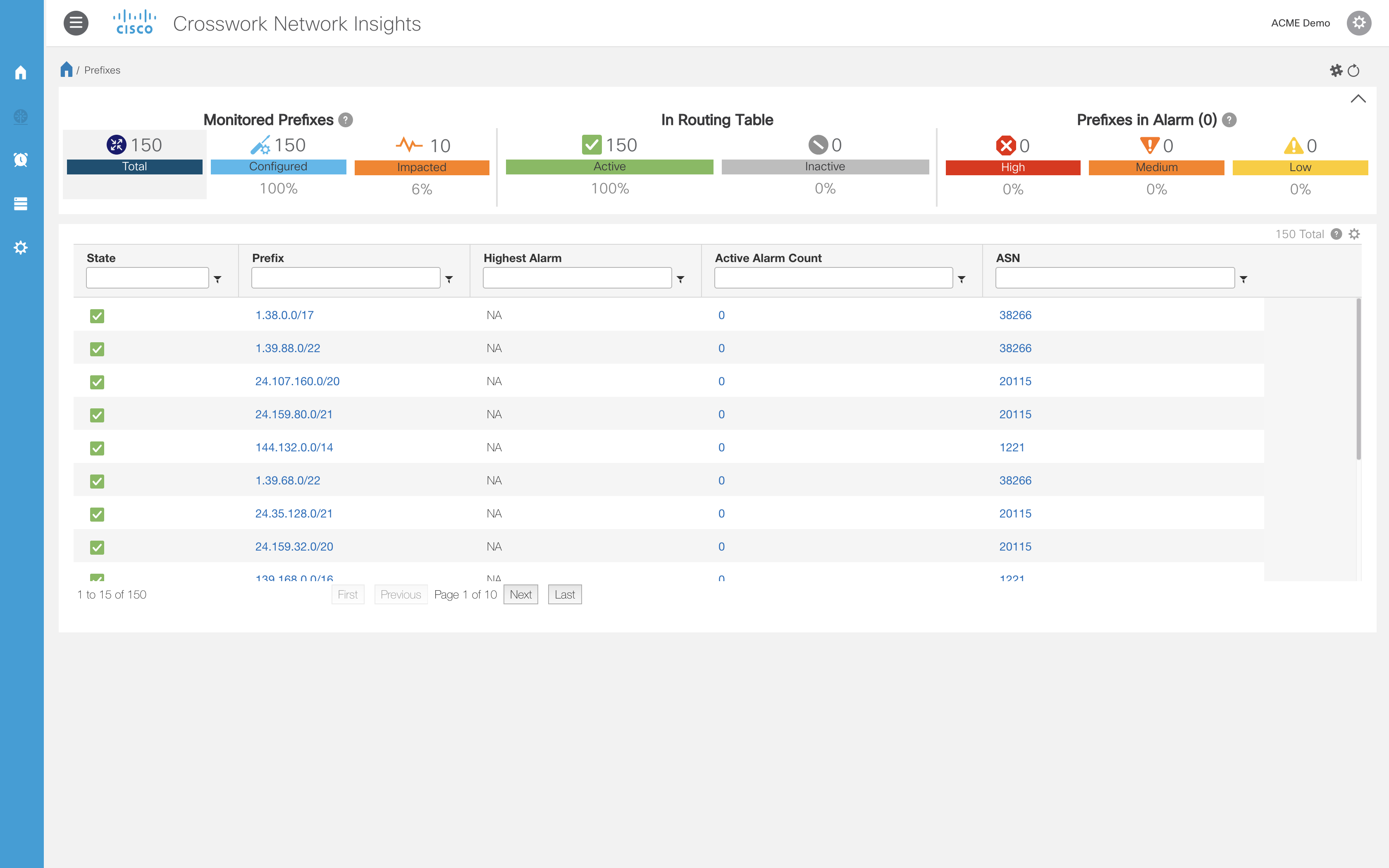 Figure 1 – Sample Network Insights Prefix Summary Page