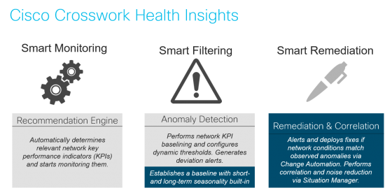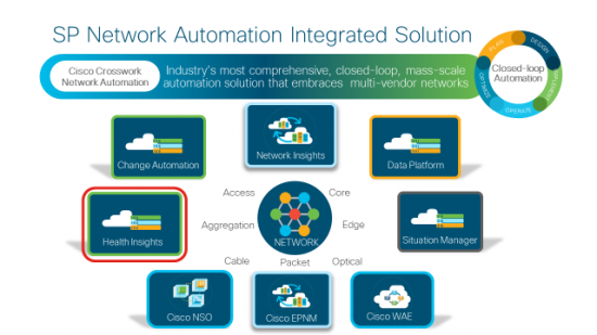- Health Insights can integrate with Cisco Crosswork Situation Manager to correlate events across networks, services, and applications.