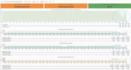 Let’s look at an example of Smart Alerts and Remediation using out-of-the-box KPI called black hole detection. There could be other KPIs like CEF drops, interface error drops that operators might be monitoring which provides alerts on known issues. Black hole detection helps isolate those problems which are not yet known or could be silent drops in the ASIC(s) which aren’t yet monitored. The transmitted packets/bytes and received transmitted bytes/packets across all interfaces on a device are used to calculate loss ratio. Interfaces statistics aren’t atomically gathered from the devices hence, by applying a low-pass filter like standard-deviation on the loss ratio, we detect if it’s a real anomaly or not. Optionally, we can schedule a CCCA node cost-out playbook when black hole event is detected, this helps to reduce the service impact of a black hole event.