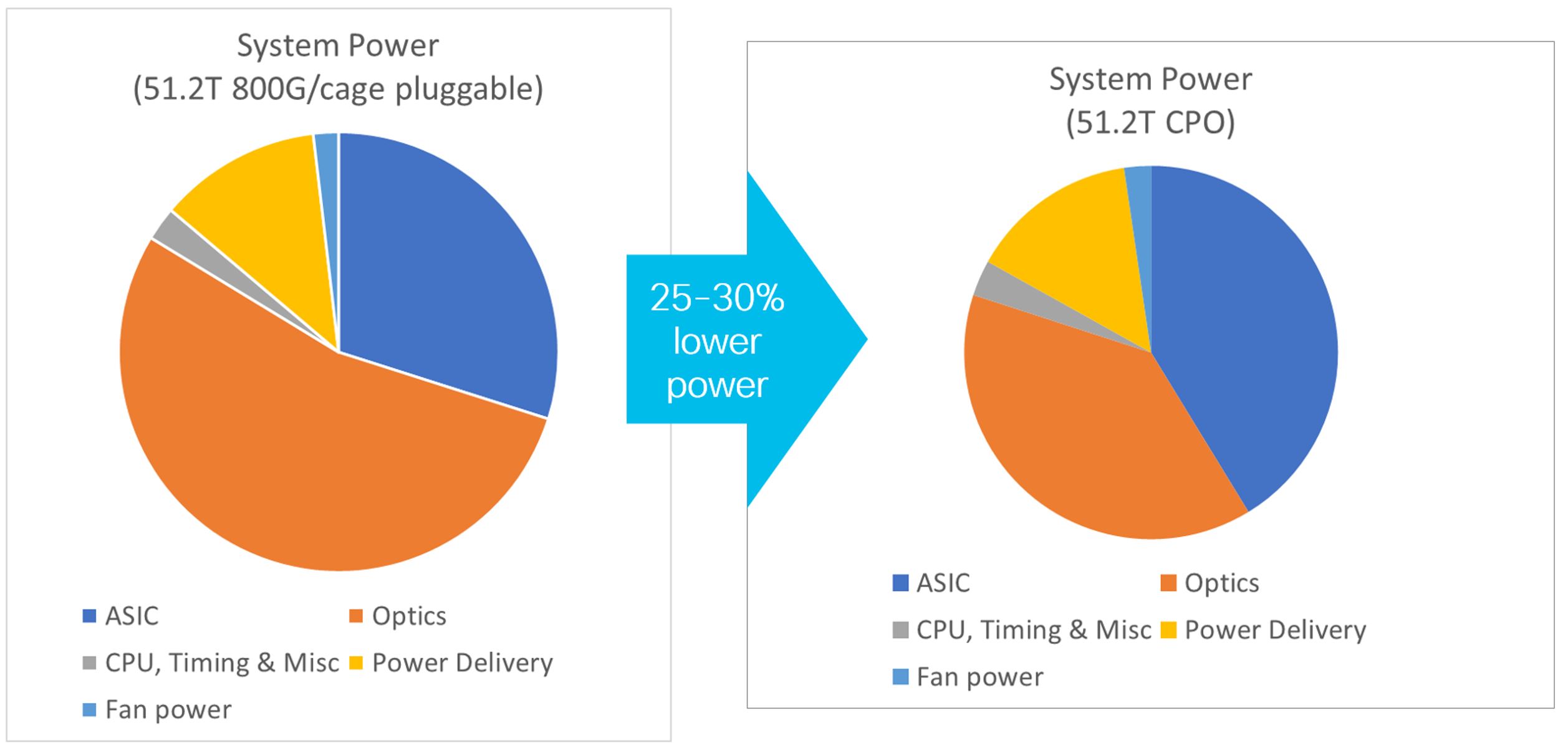 As a result of these innovations, the power required for connecting the Switch ASIC to front panel pluggable optics can be reduced by up to 50%, resulting in a total fixed system power reduction of up to 25-30%.