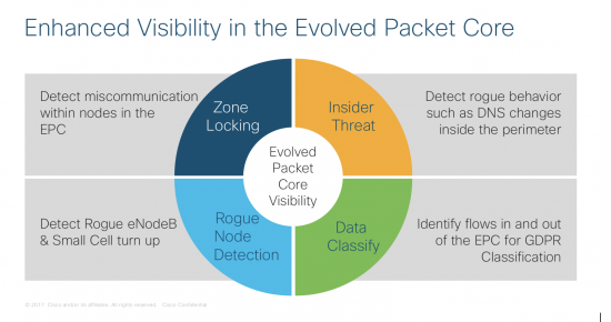 So how can service providers detect and repair data breaches quickly and completely? Leveraging Cisco Stealthwatch, a proven technology in big data, analytics and machine learning, Cisco is pleased to announce enhanced visibility for service providers in the LTE evolved packet core (EPC) and 5G converged packet core and network slices. Stealthwatch for EPC allows an operator to quickly and easily identify, investigate and remediate when elements in the core violate standard behaviors; and allows greater simplification of EPC operational controls and enforcement.