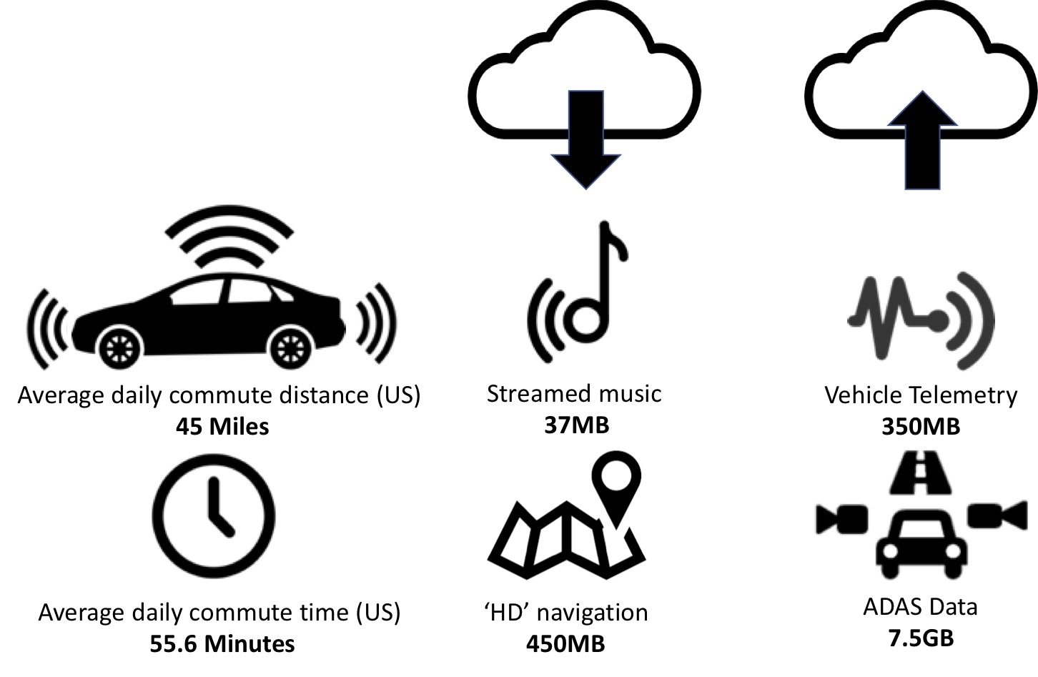 As vehicle manufacturers increase the number of models within their vehicle fleets that are a) connected and b) carrying more data gathering capabilities from a range of different sensor types, one should expect that the data volumes that the manufacturers will gather will increase. In addition, new features and functionality will be added that will make use of network connectivity.