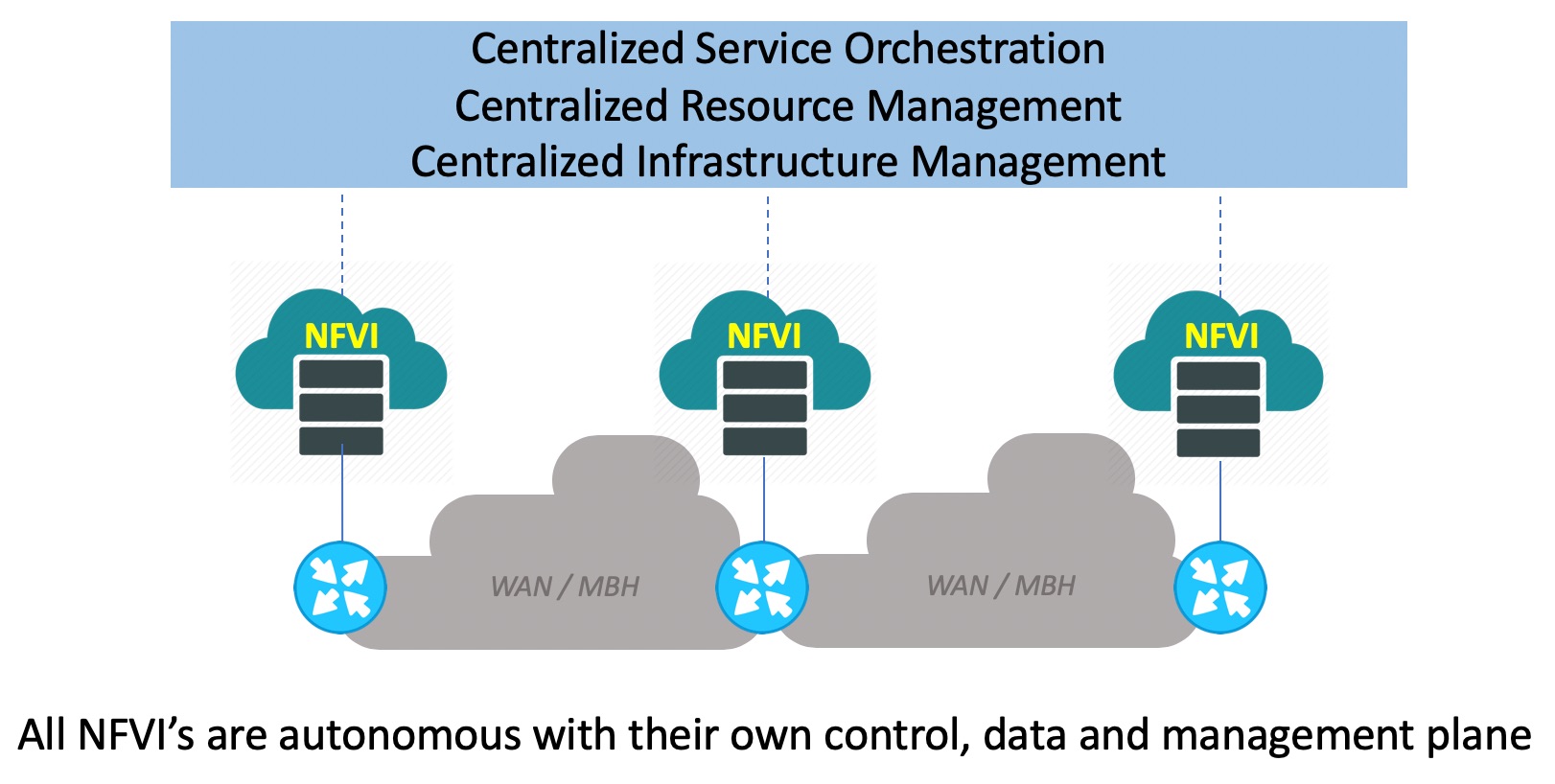 From an architectural point of view, the Telco Cloud can be seen largely as a combination of two major building blocks: NFVI (NFV Infrastructure) and MANO (Management and Orchestration). These map very well into the ETSI NFV reference architecture framework.
