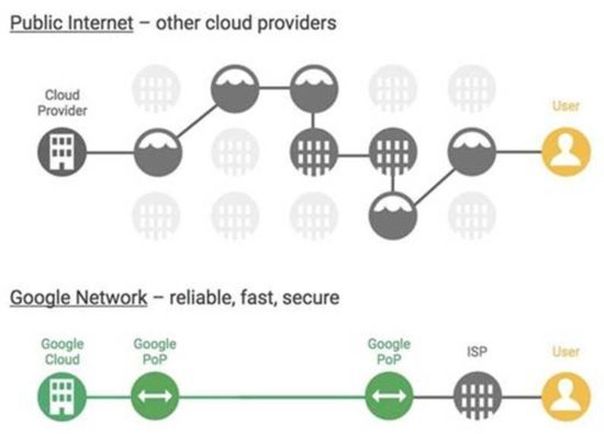 Figure 1: The below figure illustrates the strategy of cloud service providers: The objective is to offer better reliability, speed and security performance as compared with the nondeterministic performance of the public internet or other cloud networks.
