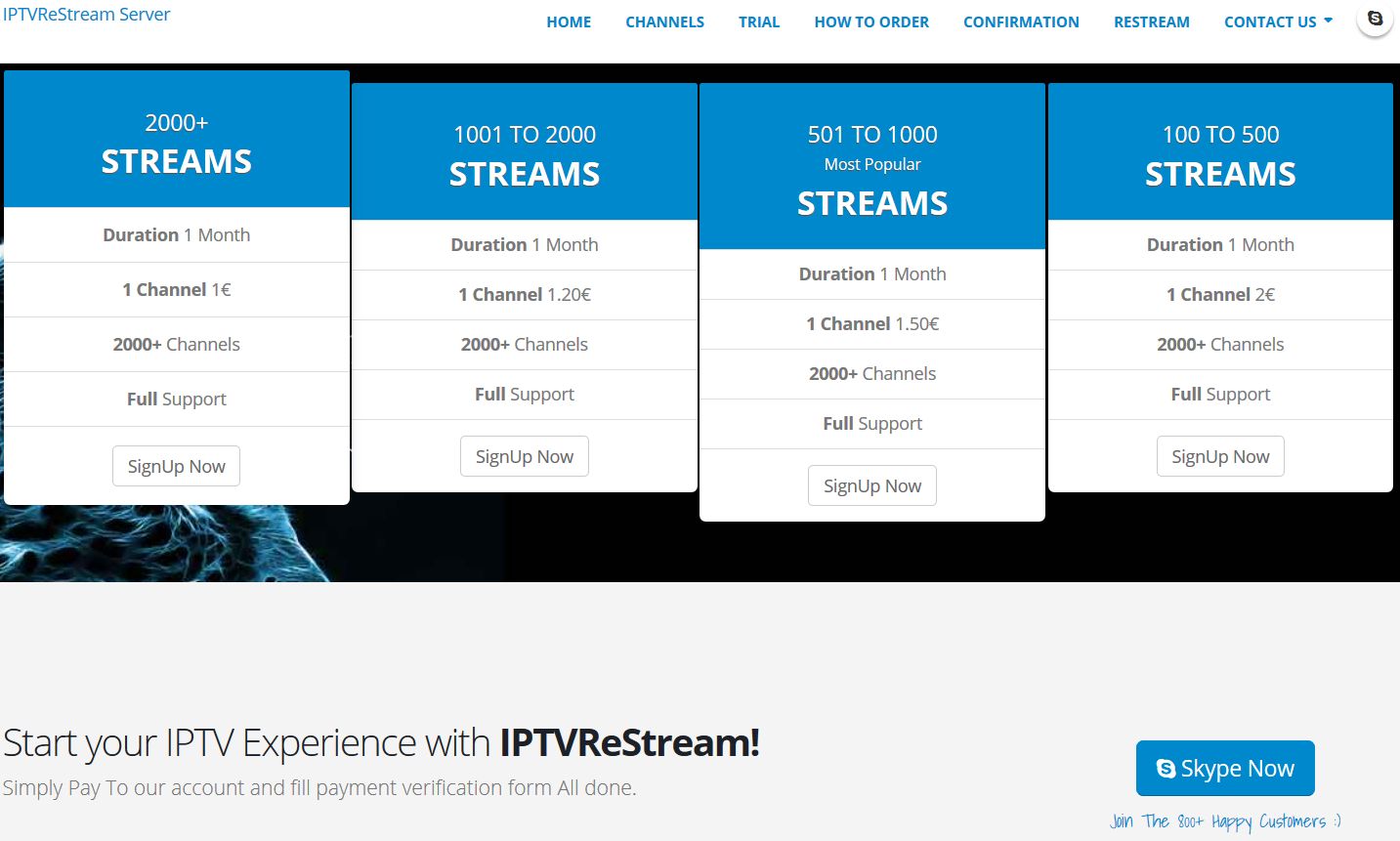There are several methods of getting the channels to the streaming server. The easiest and most common method, “re-streaming”, involves the streaming server owners replicating and selling their content to other pirate servers. Since the streams are already in the cloud, it is very easy to transfer them from server A to server B. Server B can have exactly the same channel offer as server A, but with its own customer base. The server owner can buy 1000 channels replicated to his server for €1200 /month. This is a fixed cost regardless of the number of clients. As the number of paying subscribers increases over time, this initial cost is easily recovered.