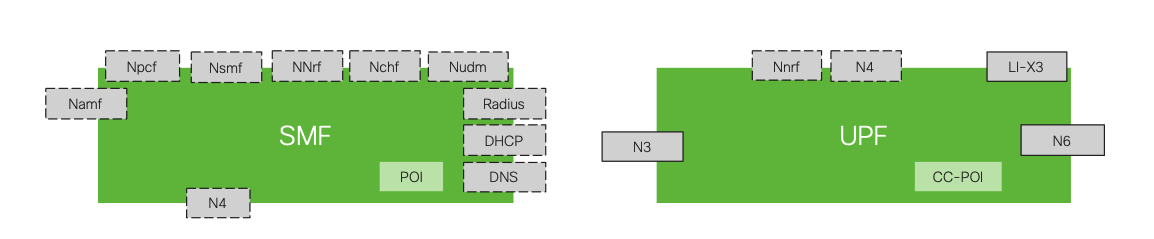 - Standalone 5G SA Session Management Function (SMF) and 5G User Plane Function (UPF) only