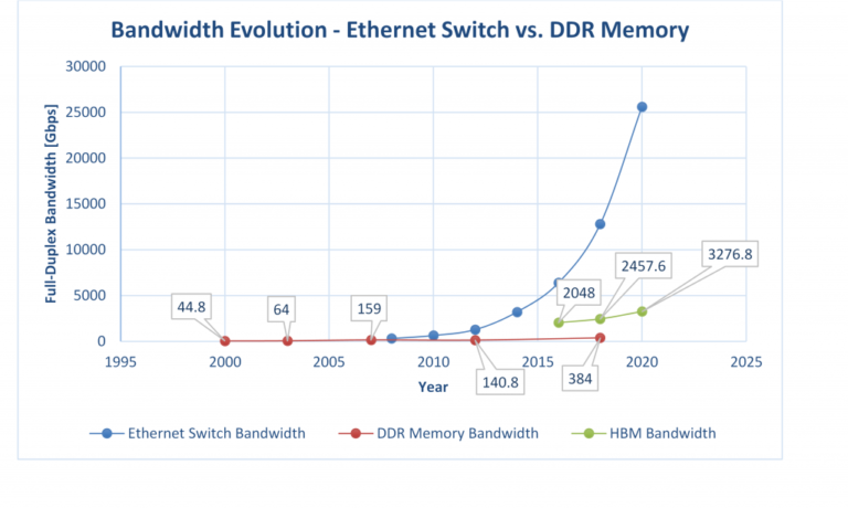 Figure 3: Bandwidth growth in DDR memories and Ethernet switches