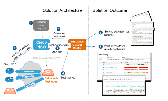 Through the integration of Netrounds and Cisco NSO, telecoms operators and CSPs are able to: