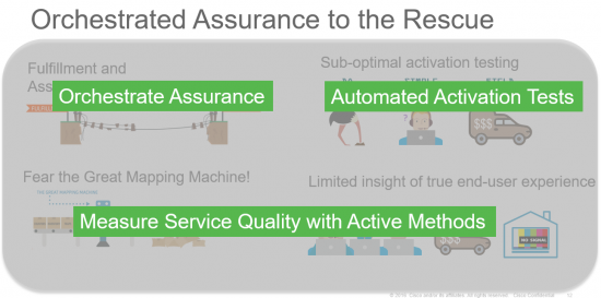 Model-driven Orchestrated Assurance offers an approach to bridging the gap between service fulfillment and assurance. Software-based test agents, which are well suited to a dynamic network environment, perform end-to-end activation tests and active monitoring that are automated throughout the full service lifecycle in closed-feedback loops. This enables Service Providers to automatically validate SLAs, discover issues earlier, and resolve problems faster.