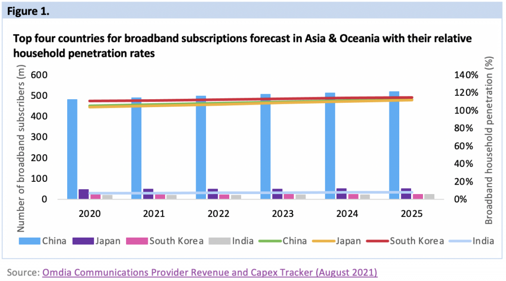 In a market approaching 5.7 billion mobile subscriptions in 2021, broadband can sometimes feel to play second fiddle in Asia & Oceania (Omdia). However, 670 million broadband subscriptions are nothing to be sniffed at – especially in a region with hundreds of millions more underserved or unserved at all.